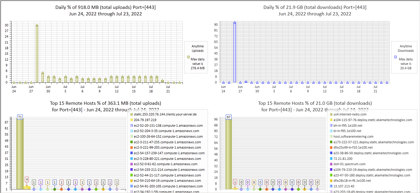 Internet Remote Port upload and download activity dashboard charts